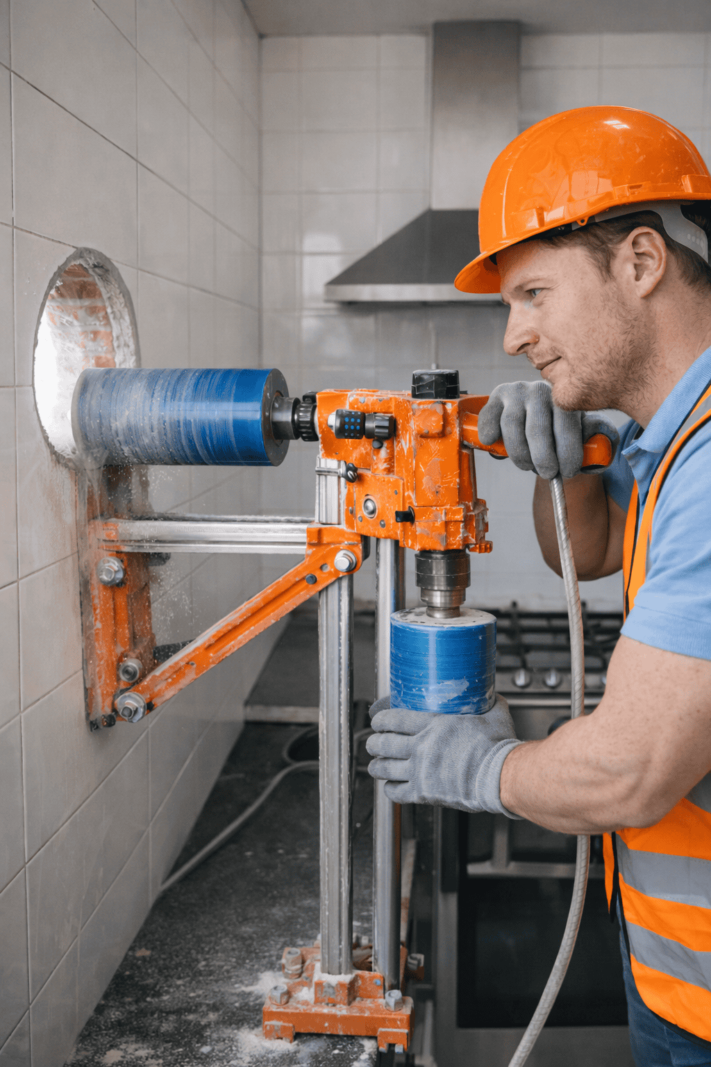 Stabilim rapid data interventiei. Venim cu echipamente profesionale de carotare diamantata potrivite pentru lucrare.